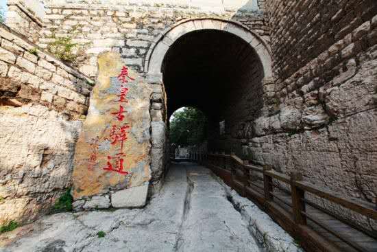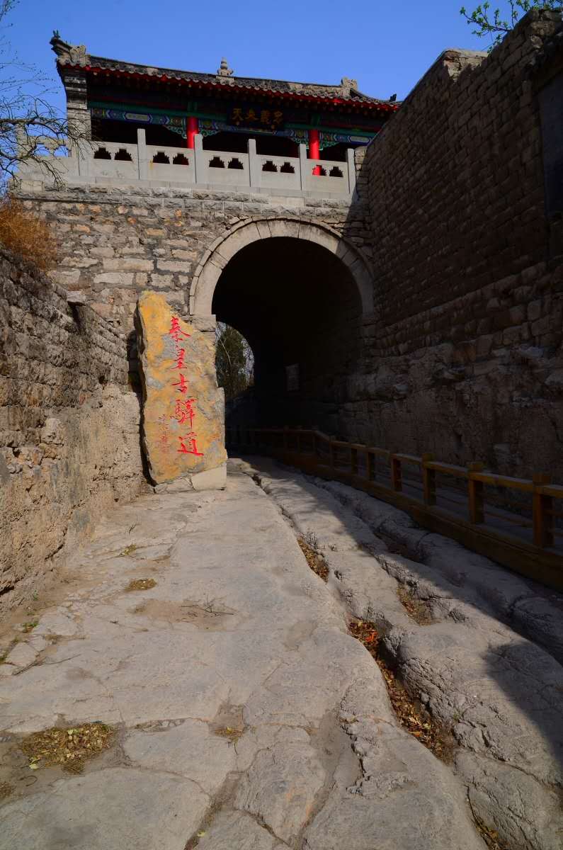 這條古驛道的歷史可追溯到秦代,曾是古代燕趙通向秦晉的交通要隘,控制冀晉兩省的咽喉所在。秦始皇統(tǒng)一中國(guó)后,修筑了以咸陽為中心的驛道,井陘古驛道就是當(dāng)時(shí)的主干線上的重要一段。這里關(guān)山環(huán)立,地勢(shì)險(xiǎn)要,是山西、陜西通京的交通要沖,為歷代兵家必爭(zhēng)之地。公元前229年秦將王翦伐趙之戰(zhàn);公元前204年漢將韓信以少勝多的背水之戰(zhàn);公元756年唐將郭子儀、李光弼殲滅叛將史思明、平定安史之亂;公元1900年清將劉光才打響抵抗八國(guó)聯(lián)軍的庚子大戰(zhàn)等等戰(zhàn)例都發(fā)生在這里。秦皇古驛道風(fēng)景區(qū)內(nèi)保留了原始的秦時(shí)馳道,而且可以清晰的在路面上看到古時(shí)車輪碾壓而成的一尺多深的車轍印記,這是“車同軌,書同文”的唯一歷史見證。