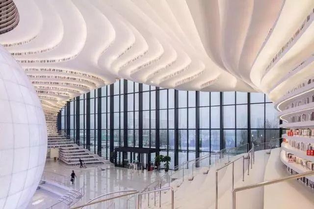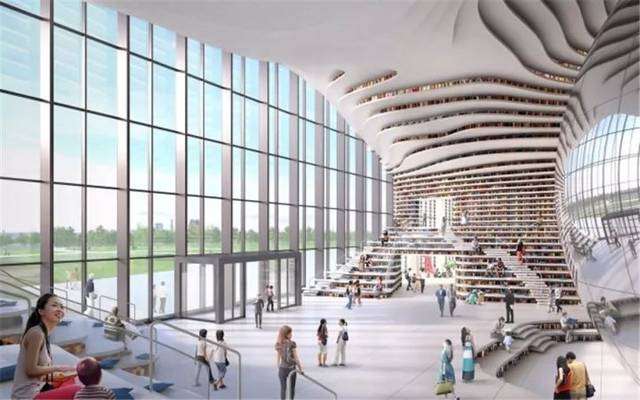 天津圖書(shū)館文化中心館分為地上五層,地下一層,在功能上實(shí)現(xiàn)了老年和青少年閱覽共享,建筑內(nèi)部結(jié)合閱覽功能設(shè)置了七個(gè)采光中庭,首層設(shè)置了南北貫穿的通廊式共享空間,以?xún)蓚€(gè)開(kāi)放的大型入口與北側(cè)湖畔廣場(chǎng)、南側(cè)城市空間相互連通,人們可以自由進(jìn)入圖書(shū)館。文化中心館涵蓋省級(jí)圖書(shū)館的全部功能,包括書(shū)、刊、報(bào)的外借閱覽,視聽(tīng)資料欣賞,數(shù)字資源加工利用,以及工具書(shū)、歷史文獻(xiàn)資料查閱,珍本圖書(shū)展示,還有古籍文獻(xiàn)保管、整理、修復(fù),還包括視障讀者、少兒讀者的服務(wù)和政府信息的查閱等;增加音樂(lè)圖書(shū)館服務(wù),開(kāi)辟音樂(lè)培訓(xùn)教學(xué)區(qū)、音樂(lè)普及體驗(yàn)欣賞區(qū)、專(zhuān)業(yè)欣賞和深度體驗(yàn)區(qū)、音樂(lè)資料收藏等區(qū)四個(gè)區(qū)域。