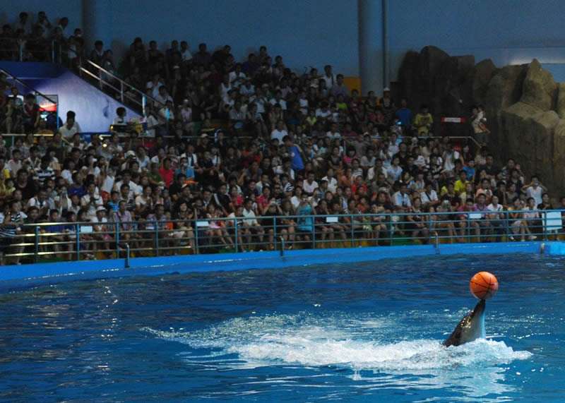 擁有1個大型表演池,3個寄養(yǎng)池,2000余個座位,可同時 3000余人觀看表演。游客們不僅可以近距離觀賞大白鯨、海豚、海獅等海洋動物的精彩表演,還可以在表演臺上與海豚PK玩轉呼啦圈,與海豚握手、親吻,和它們零距離接觸。