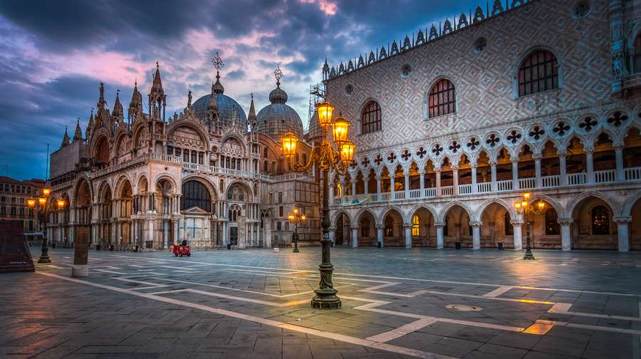 圣馬可廣場(chǎng)(Piazza San Marco) ,官方標(biāo)準(zhǔn)譯名圣馬爾谷廣場(chǎng),又稱威尼斯中心廣場(chǎng),一直是威尼斯的政治、宗教和傳統(tǒng)節(jié)日的公共活動(dòng)中心。