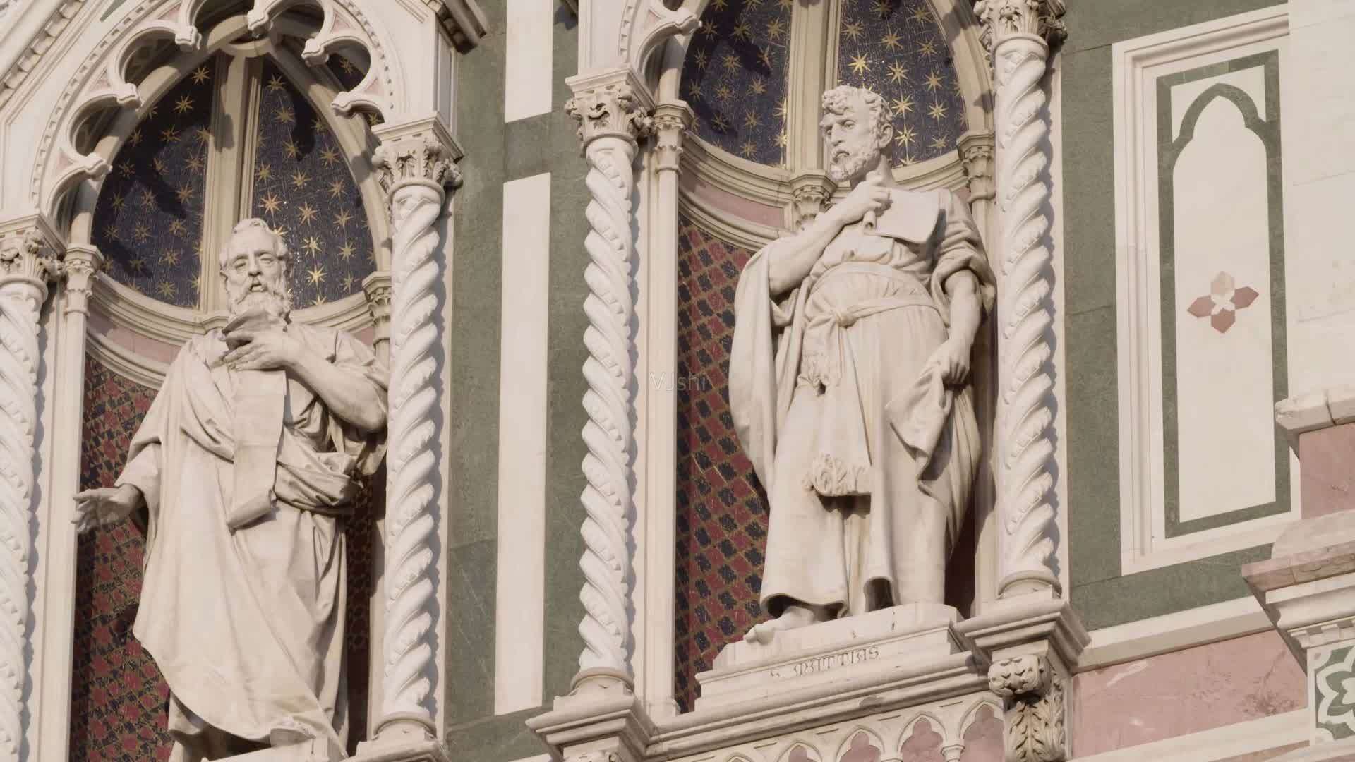 高85米,最初是1334年由大畫家喬托設(shè)計(jì)并監(jiān)工的,故稱其為“喬托鐘塔”。屬哥特式建筑,由六層方型結(jié)構(gòu)向上堆疊成柱形,外墻鋪白色大理石,純凈優(yōu)雅。