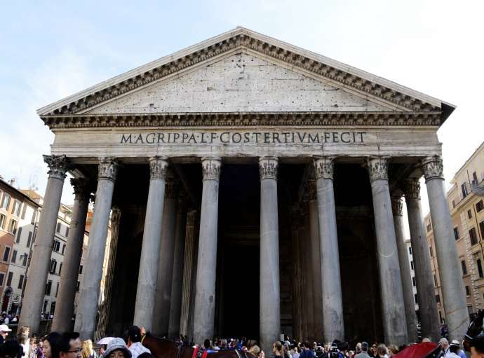 羅馬皇宮則建于帕拉蒂諾山上,后世習(xí)稱帕拉蒂諾皇宮,包括大量廳堂、浴室及賽車場(chǎng)、劇場(chǎng)等。這些古跡只存廢墟,惟有萬神殿完整保留下來。它是一座圓形圓頂?shù)纳駨R,前有古典式柱廊,圓頂用天然混凝土,即以火山灰石筑成,是羅馬建筑在結(jié)構(gòu)技術(shù)方面的偉大創(chuàng)造。其圓頂高達(dá)43米,寬亦相近,氣魄宏偉,結(jié)構(gòu)嚴(yán)密,對(duì)日后歐洲古典建筑有深遠(yuǎn)影響。