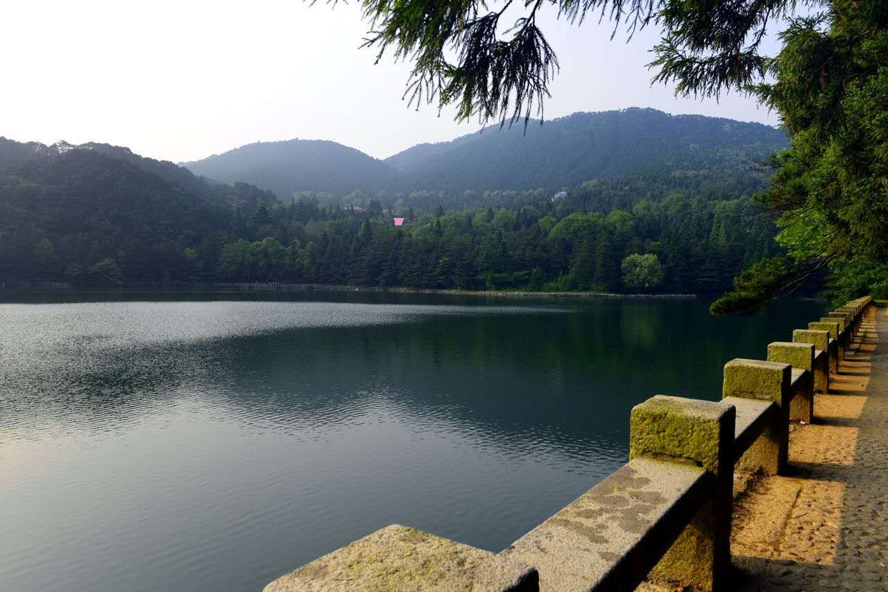湖水潔凈清澈,版權(quán)所有山東聊城聊之旅國際旅行社有限公司,轉(zhuǎn)載必究!碧清如鏡,山色倒影,相映成趣。湖心有兩小亭,外觀秀麗、精巧,為湖面增光添彩,內(nèi)則分別用作汲水塔和溢洪道。