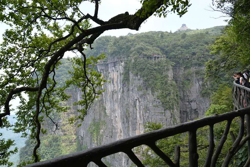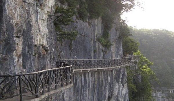鬼谷棧道是一道全線都立于萬丈懸崖的中間的棧道,位于覓仙奇境景區(qū),因懸于鬼谷洞上側(cè)的峭壁沿線而得名。