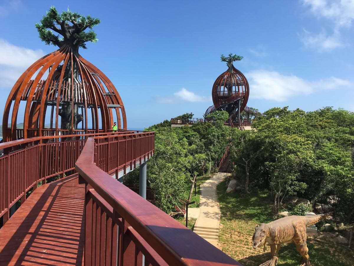 從景區(qū)主入口進入,依次參觀亞龍灣印象區(qū):中心圖騰廣場、冰世界熱帶零度樂園、絲路貝殼館、絲路驛站海底餐廳、“蒙太奇炫影”潛水;濱海樂園區(qū):水上樂園、“天下第一灣”、濱海浴場、亞龍灣愛立方海上婚紗基地;山海相望區(qū):光陰流轉隧道、仁智橋、百歲階;觀海休閑區(qū):時運廣場、不老松;山頂叢林區(qū):“愛之巔”樹梢行走、碟繭樹屋、叢林仙境;蝴蝶谷生態(tài)區(qū):開心樂園、蝴蝶谷生態(tài)園、蝴蝶谷博物館、雨林溪徑,然后按原路返回。