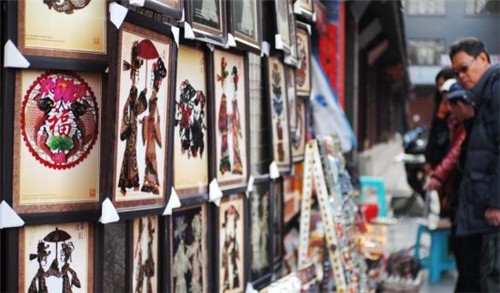 從南大街走到書院門,忽然好像一下子安靜了下來。路兩邊,高大的槐樹后面,紅漆格子門半開著,大大小小的湖筆從門檐上面垂下來,一條浸透墨香的路便向遠方鋪展開來約570多米,濃郁的古風撲面而來。兩邊鱗次櫛比地集中了碑帖拓片、名人字畫、印章印譜、文房四寶等100多家店鋪,在二、三層雕欄樓閣上,掛著一色的黑底金字牌匾,書寫著文萃閣、醉書軒、聚看齋、皓月宮等店名。這里的店鋪門面既不像江南商號那樣纖巧秀麗,也不同于北京大柵欄那樣富麗堂皇。而是古樸敦厚,門面很少有繁瑣的裝飾,牌匾、楹聯(lián),還有深狹的門道,顯示了一種儒雅祥瑞、深藏若虛的氛圍。商家所售的商品有各種旅游紀念品、工藝品等。然而墨香的古文化街最能體現(xiàn)特色的商品當屬種類繁多的文房四寶、書法字幅、國畫卷軸、碑帖拓片、藍田美玉以及古老的樂器“塤”。