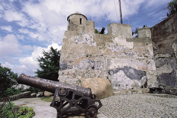 媽閣炮臺(tái)(又名圣地亞哥炮臺(tái),位于西灣西端)建于一座歷史悠久的古堡上,距今350多年歷史。澳門政府在公元1622年前修筑炮臺(tái),以防守澳門的入口水路。