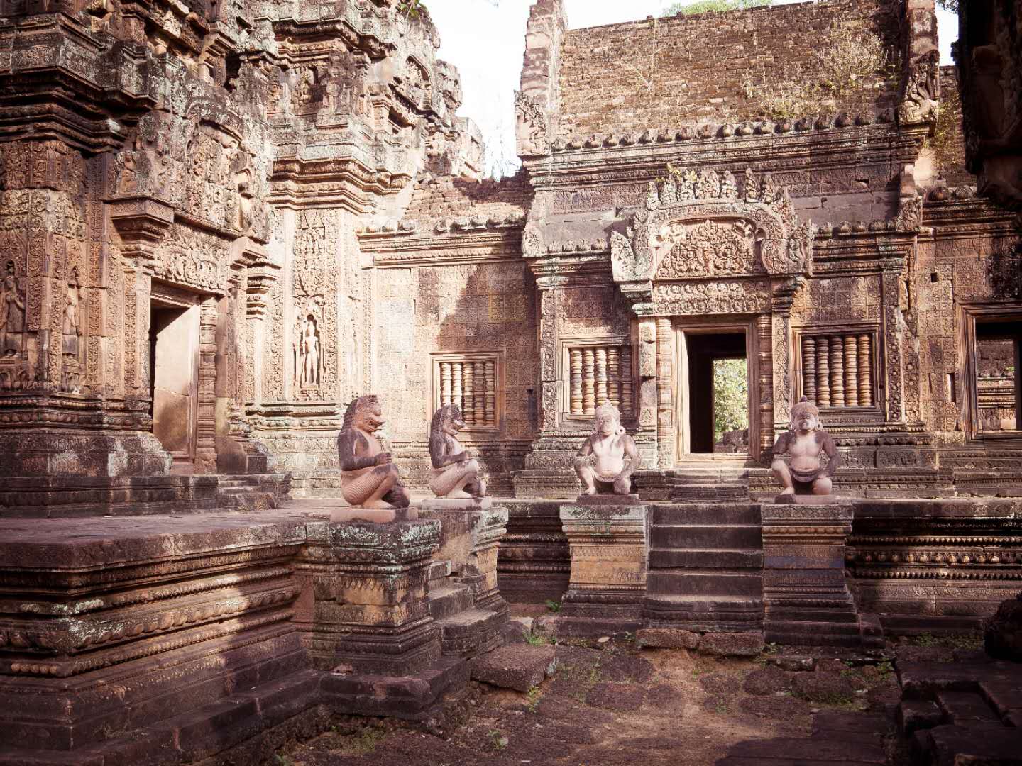 以下寺廟都離開了吳哥中心地區(qū),但是只要給你的摩托司機(jī)多付幾美元(每天US$10),吳哥環(huán)城游就可以將女王宮和高布思濱(KbalSpean)包含進(jìn)去。如果再加幾塊錢(每天US$15),就有可能包含崩密列(BengMealea)了。普通的吳哥聯(lián)票只能進(jìn)入女王宮和高布思濱。