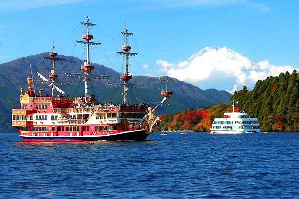 箱根的蘆湖為火山湖,海拔724米,方圓20千米,面積7平方千米,湖最深處達(dá)45米, 湖水清澈湛藍(lán)。晴天時(shí)可從這里看到終年積雪的富士山,大涌谷附近設(shè)有自然科學(xué)館,是江戶時(shí)代幕府設(shè)置的關(guān)卡,在關(guān)所的定番所內(nèi)陳列著當(dāng)時(shí)行人攜帶的“身份證”、捕吏使用的短槍、長柄大刀等1000多件文物以及栩栩如生的關(guān)所檢查人員的塑像,現(xiàn)為重點(diǎn)保護(hù)文物。 箱根的溫泉久負(fù)盛名,著名的有“箱根七湯”(指最著名的7個(gè)溫泉),是療養(yǎng)的好地方。坐上登山電車、電纜車和空中吊車登山,可欣賞逶迤的溪谷、富士山的雄姿和蘆湖的旖旎風(fēng)貌。