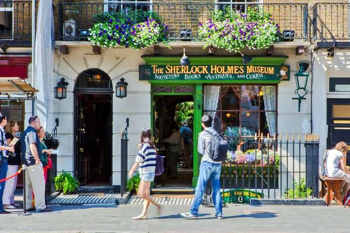 貝克街221B號(及239號)是于1990年成立的福爾摩斯博物館(Sherlock Holmes Museum),館內(nèi)的布置擺設(shè)都以小說中提及的情節(jié)為佐,更增添福爾摩斯舊居的真實性。這是個精巧迷人的觀光場所,福爾摩斯與華生醫(yī)生的辦公室都依據(jù)故事內(nèi)容重新裝潢。你可以坐在一樓書房的爐子旁,試戴福爾摩斯的帽子,并拿著他的煙斗,模仿他的姿勢。再走一點,就會看到真正的221B號,它現(xiàn)在是國家教堂,這里每周都會收到從世界各地的福爾摩斯迷寄來的一百多封信。親自造訪教堂的人們,可以免費拿到福爾摩斯簡冊與明信片。