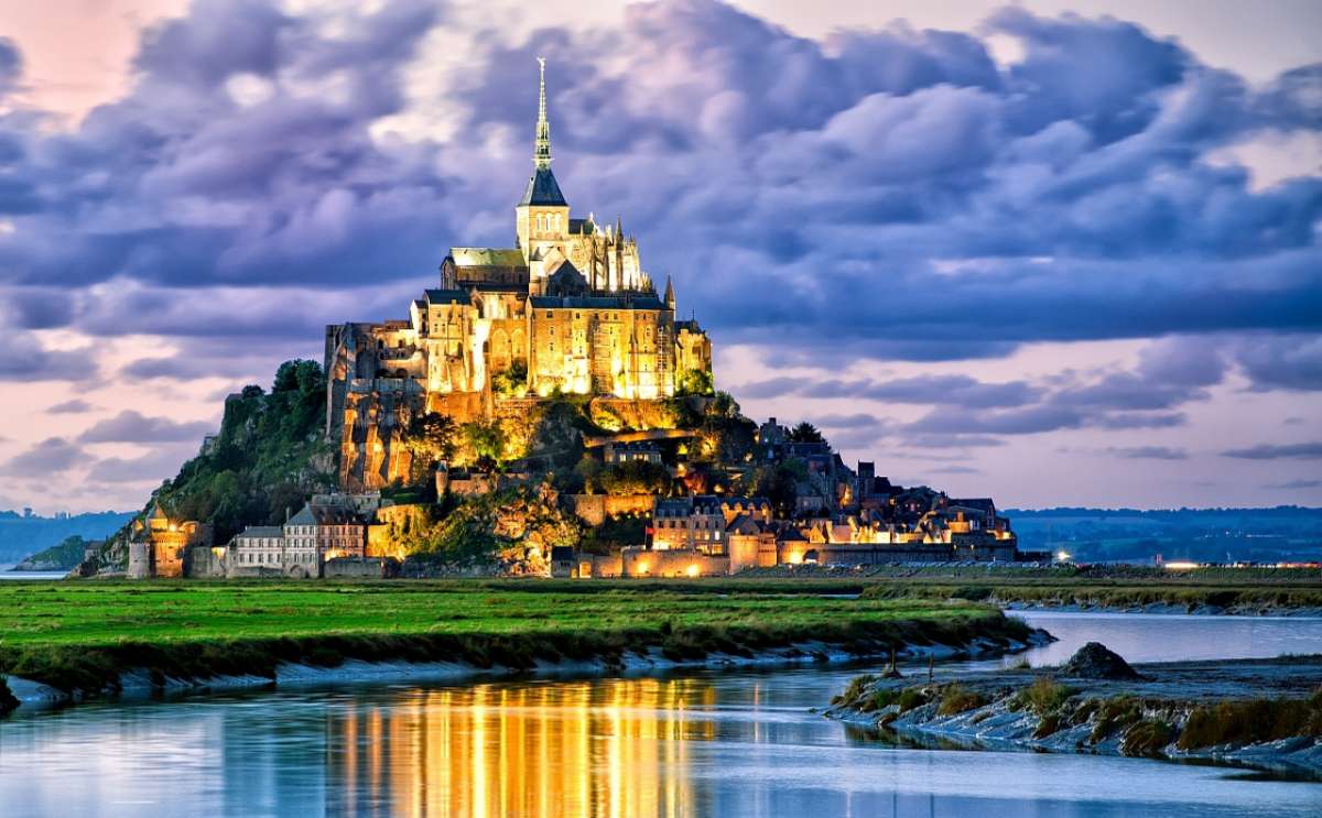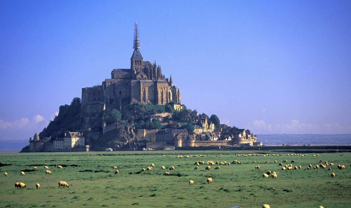 圣米歇爾山是天主教除了耶路撒冷和梵蒂岡之外的第三大圣地,位于法國北部諾曼底和布列塔尼之間的海面上,高約80米,上面有座用花崗巖建成的修道院。