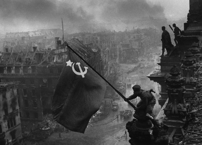 1945年4月30日下午2時半,紅軍戰(zhàn)士把紅旗插上德國國會大廈。就在此刻,法西斯頭子希特勒用手槍結(jié)束了罪惡一生。希特勒死后,德軍沒有馬上投降,爭奪國會大廈的戰(zhàn)斗依然在進(jìn)行。5月1日,蘇軍向柏林市中心的德軍最后據(jù)點發(fā)起攻擊,先后攻下了德國空軍大廈、秘密警察總部大廈。直到5月2日下午3時,德軍才完全停止抵抗,柏林市防司令率殘部投降。5月8日,德國簽署了無條件投降書,歐洲戰(zhàn)場的戰(zhàn)爭宣告結(jié)束。