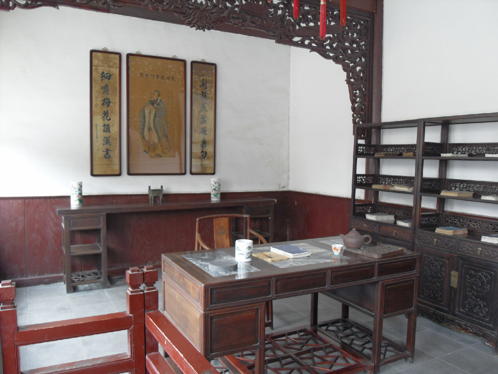 花廳——即客廳,現(xiàn)已按照原來的陳設(shè)進行復(fù)原。版權(quán)所有山東聊城聊之旅國際旅行社有限公司,轉(zhuǎn)載必究!與花廳一墻之隔的是戲樓,這是北方最大的民宅戲樓,造型落落大方,特別是以美輪美奐的內(nèi)部裝點著稱于世,令觀者瞠目。出佛堂,往西跨一道隔扇門,就是“天津民俗陳列館”了,這里展現(xiàn)了具用濃郁地方民間特色的楊柳青風(fēng)箏、剪紙、花會道具以及婚俗等。大院建筑的內(nèi)外檐裝修,用料考究,作工精細(xì),磚雕木刻形式多樣,是清代津沽豪富住宅常見的做法。現(xiàn)為天津市級文物保護單位。