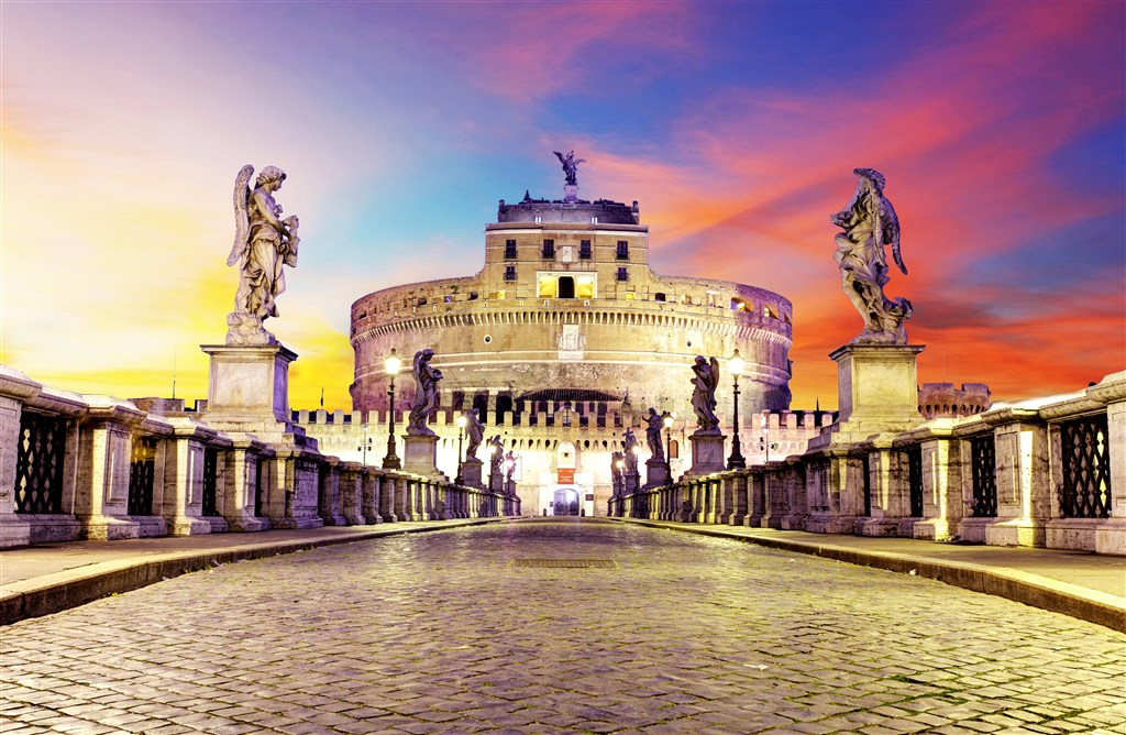 圣天使堡(Castel Sant’Angelo),位于意大利羅馬臺(tái)伯河畔,古羅馬地區(qū)的最西端,又稱哈德良陵墓(Mausoleo di Adriano).有數(shù)條橋可通往臺(tái)伯河西岸,較重要的一是伊曼紐爾二世橋(Ponte Vitttorio Emanuele Ⅱ),另一就是前往圣天使堡的著名橋梁(Ponte Santa Angelo)。