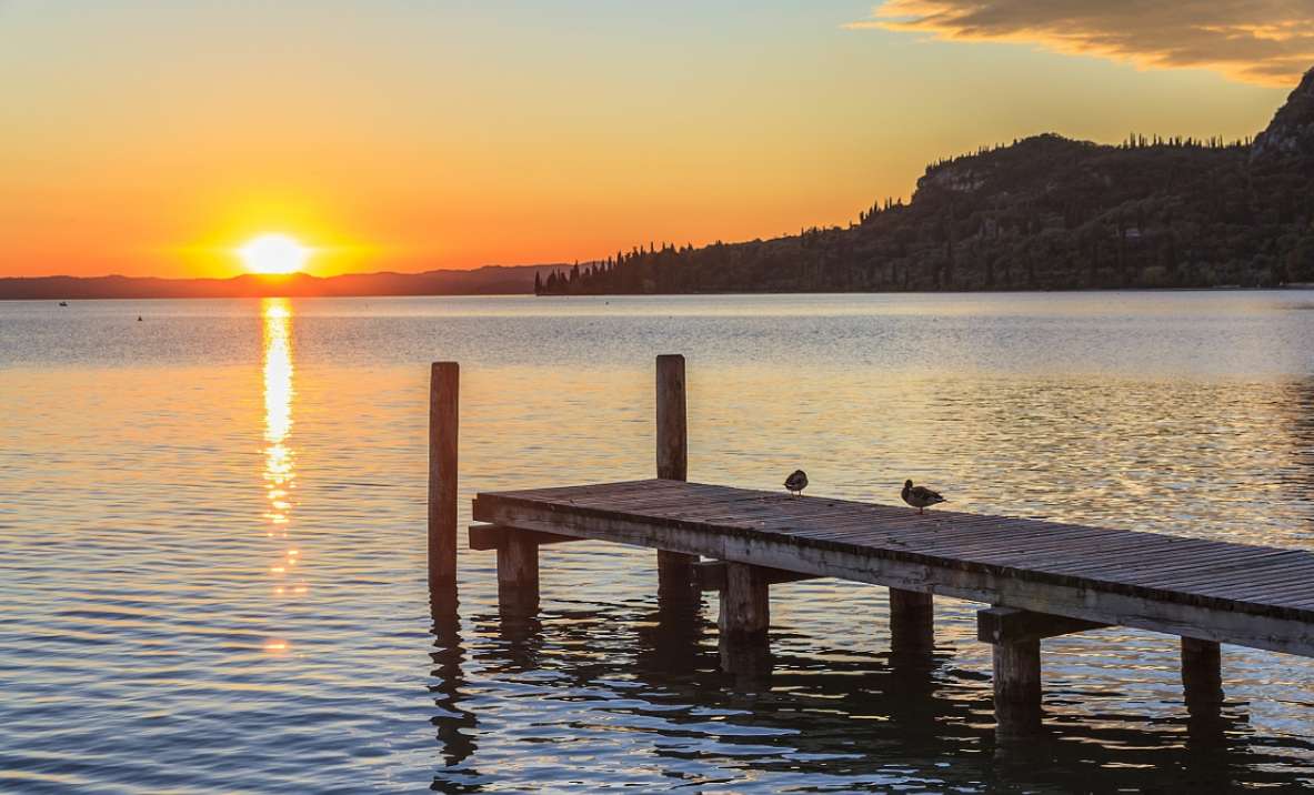 加達(dá)湖(Lago di Garda),是意大利面積最大的湖泊,約在威尼斯和米蘭的半途之間,坐落于阿爾卑斯山南麓,在上一次冰河時(shí)期結(jié)束時(shí)因?yàn)楸ㄈ诨纬伞?/p>