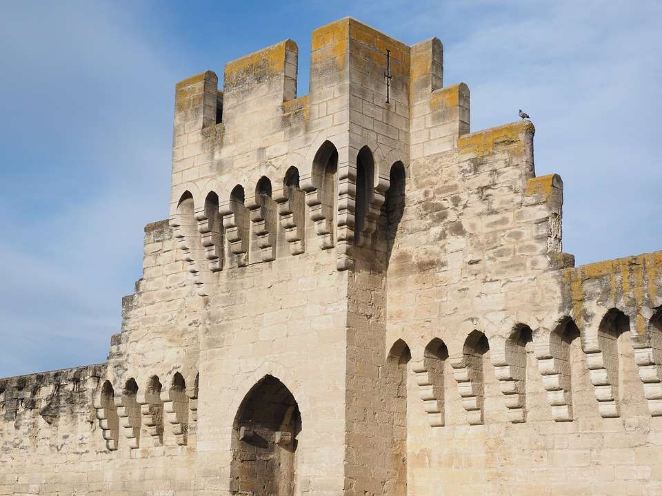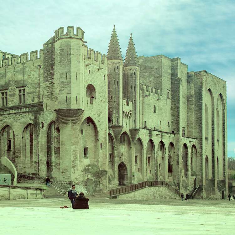 教皇宮(Palais des Papes) 由西蒙德 . 馬蒂尼和馬泰奧.焦瓦內(nèi)蒂設(shè)計裝飾的羅馬教主宮,看上去是非常古樸的城堡,它俯視著這座城市,環(huán)城的城墻和 12 世紀(jì)遺留下來的橫跨羅納河的橋梁。這座突出的哥特式建筑下面的廣場上,小宮殿和圣母院教士的羅馬主教堂構(gòu)成了一組特殊的紀(jì)念碑,他們顯示了阿維尼翁在 14 世紀(jì)基督化的歐洲所扮演的突出角色。