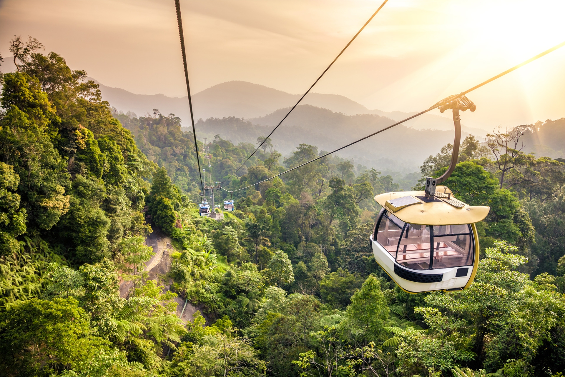 云頂纜車從位于梧桐再也的云頂纜車站出發(fā),直達(dá)美星酒店。云頂纜車由馬來西亞第四任首相拿督斯里馬哈蒂爾·本·穆罕默德醫(yī)生于1997年2月21日主持開幕。云頂纜車以每8人一車廂并在一小時(shí)內(nèi)載送2000名乘客上山。它的極速為每秒6公尺,只需大約15分鐘便能完成3.38公里長(zhǎng)的登山路程。隨著纜車的緩緩上升,馬來西亞特有的奇花異草,以及各種只有熱帶才有的植物、動(dòng)物和鳥類躍然眼前。往往纜車坐到半山腰就能看到云霧繚繞,如入仙境,到了山頂,室外也經(jīng)常是云里霧里,看來“云頂”這個(gè)名字確實(shí)也是有點(diǎn)說法的。