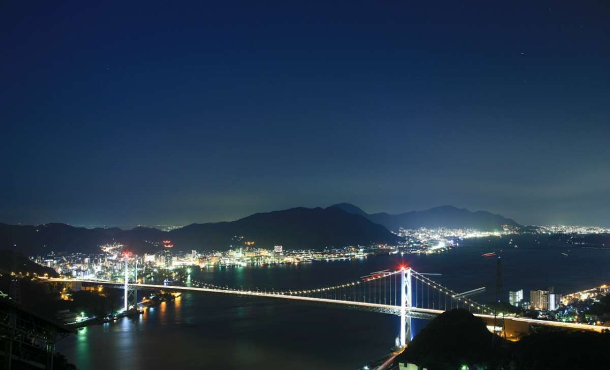 關(guān)門橋(Kanmon Bridge):關(guān)門橋(又稱關(guān)門大橋)是一座連接本州島和九州島的大吊橋,也是構(gòu)成泛亞公路(Asian Highway Network)的一部分。1973年開通以來一直都是連接兩島的重要交通路線,也是下關(guān)市遠(yuǎn)近聞名的觀光景點(diǎn)之一。橋長1068米。