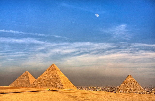 埃及共發(fā)現(xiàn)金字塔96座,最大的是開(kāi)羅郊區(qū)胡夫的三座金字塔。