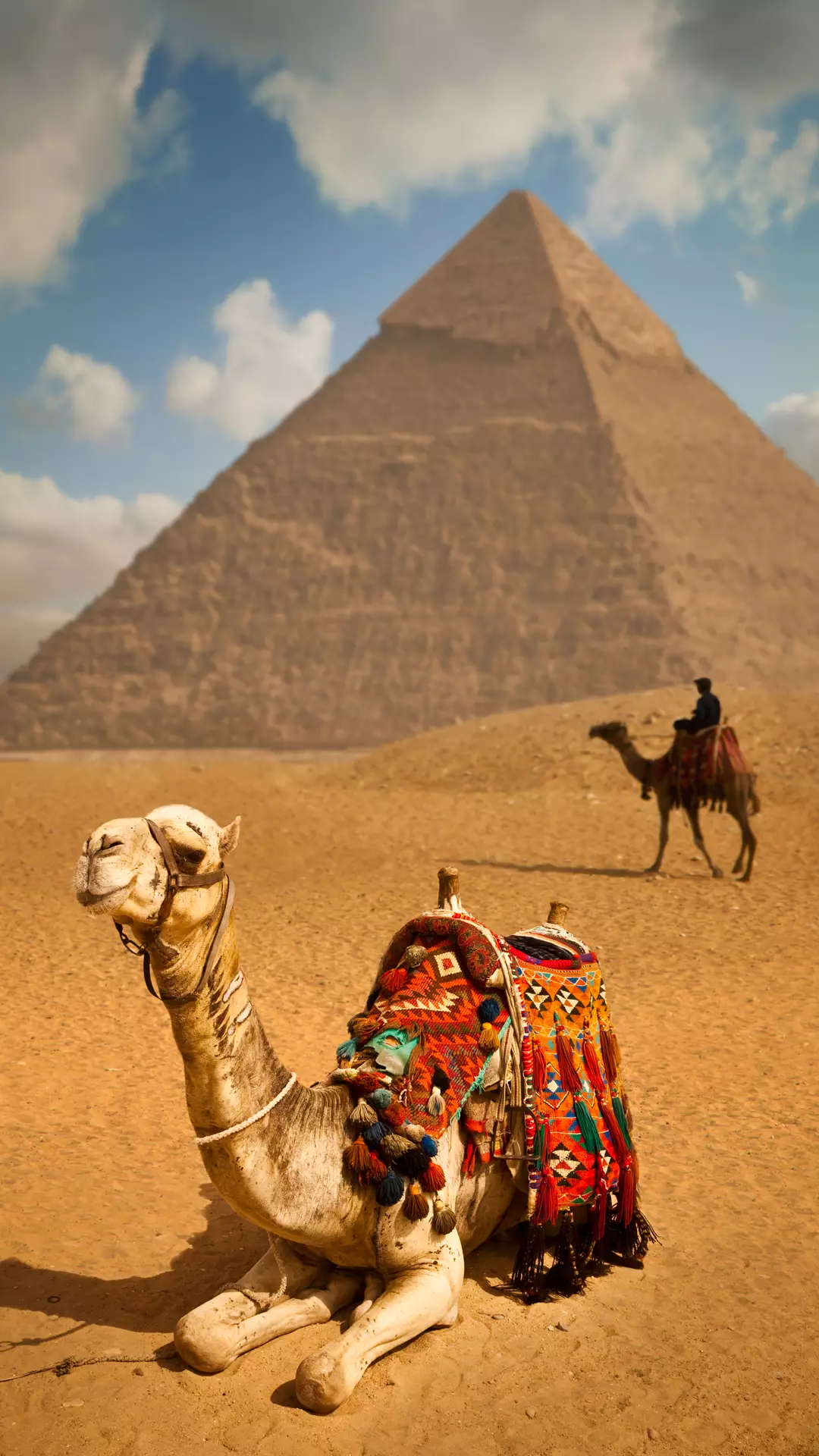 金字塔在埃及和美洲等地均有分布,古埃及的上埃及、中埃及和下埃及,今蘇丹和埃及境內(nèi)?,F(xiàn)在的尼羅河下游,散布著約80座金字塔遺跡。 大小不一,其中最高大的是胡夫金字塔,高146.5米,底長(zhǎng)230米,共用230萬(wàn)塊平均每塊2.5噸的石塊砌成,占地52000平方公尺。石塊之間沒(méi)有任何黏著物,靠石塊的相互疊壓和咬合壘成。國(guó)王哈佛拉的金字塔前,還矗立著一座象征國(guó)王權(quán)力與尊嚴(yán)的獅身人面像。埃及金字塔是古埃及的帝王(法老)陵墓。世界七大奇跡之一。數(shù)量眾多,分布廣泛。開(kāi)羅西南尼羅河西古城孟菲斯一帶的金字塔是占有集中的一部分。