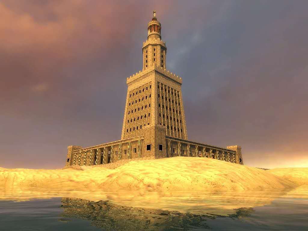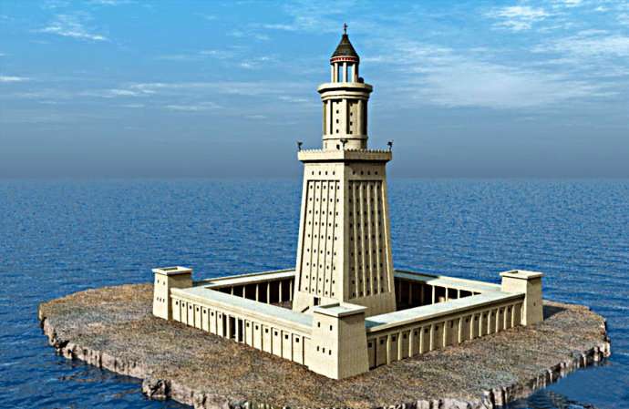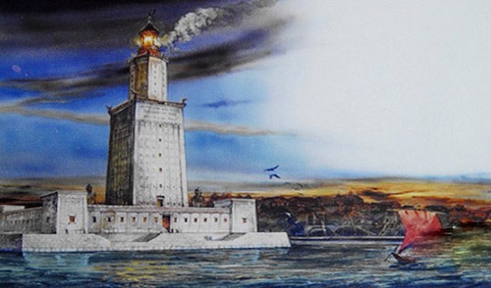 亞歷山大燈塔(The Lighthouse of Alexandria)高120米,加上塔基,整個(gè)高度約135米。塔樓由三層組成:第一層是方形結(jié)構(gòu),高60米,里面有300多個(gè)大小不等的房間,用來作燃料庫(kù)、機(jī)房和工作人員的寢室;第二層是八角形結(jié)構(gòu),高15米,用以存儲(chǔ)與輸送石油;第三層是圓形結(jié)構(gòu),上面用8米高的8根石柱圍繞在圓頂燈樓。燈樓上面,矗立著8米高的太陽神赫利俄斯站立姿態(tài)的青銅雕像。整座燈塔都是用花崗石和銅等材料建筑而成,燈的燃料是橄欖油和木材。整個(gè)燈塔的面積約930平方米。聰明的設(shè)計(jì)師還采用反光的原理,用鏡子把燈光反射到更遠(yuǎn)的海面上。這座無與倫比的燈塔白天日光閃耀,夜夜燈火通明,兢兢業(yè)業(yè)地為入港船只導(dǎo)航,它給舵手帶來了一種安全感。