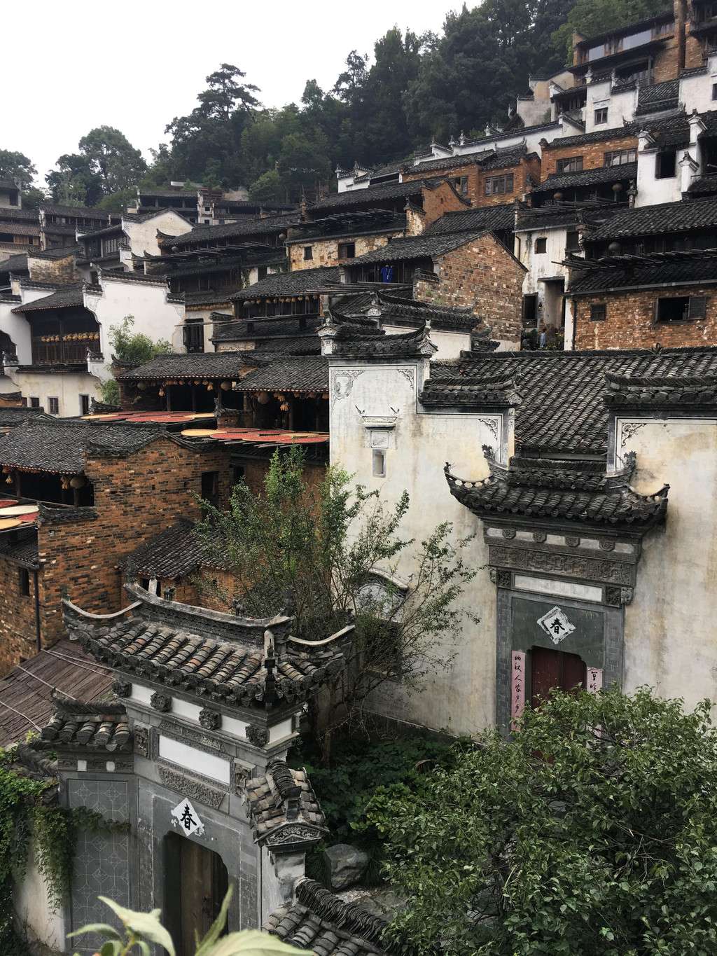 篁嶺古村從民居、官宅到祠堂、牌坊,處處雕飾著的“徽三雕”圖案?!盎杖瘛笔侵富张晒沤ㄖ械拇u雕、石雕和木雕,是徽派建筑中精華的部分。“三雕”技藝,已列入首批國家級非物質文化遺產名錄。位于篁嶺景區(qū)內的徽建“官廳”就有磚雕、石雕、木雕三雕裝飾,官廳是宅居主人身份、智慧的象征。磚雕門樓被稱為“文化門”。