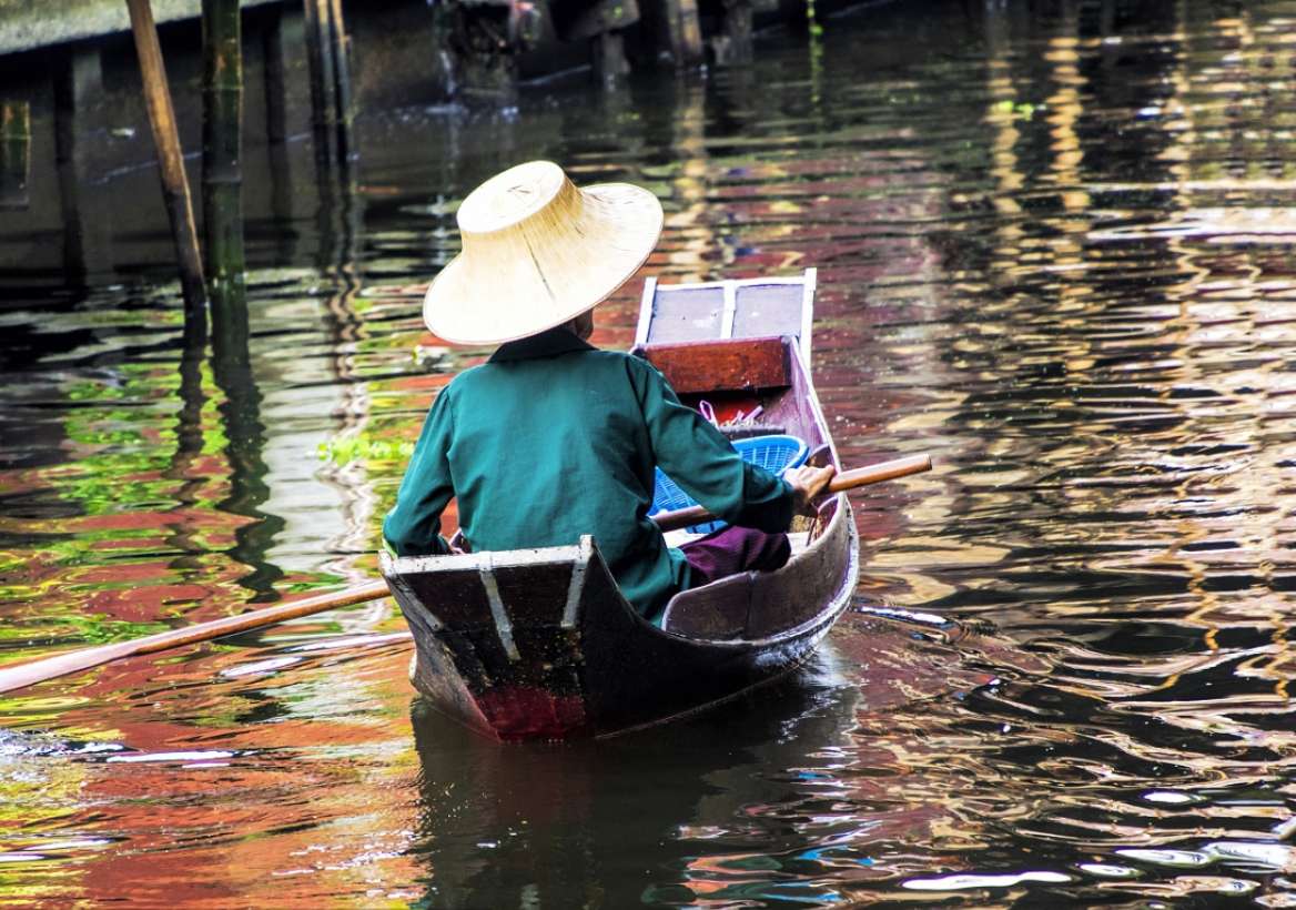 水上市場的河道來自Maeklong河水支流,這里的居民家家戶戶靠水上交易度日,早已練就一身河上掌舵的好身手,這是一座相當典型的歐式水上市場,繁華的小運河,不準機械式船只進入,只容許劃槳船通行。