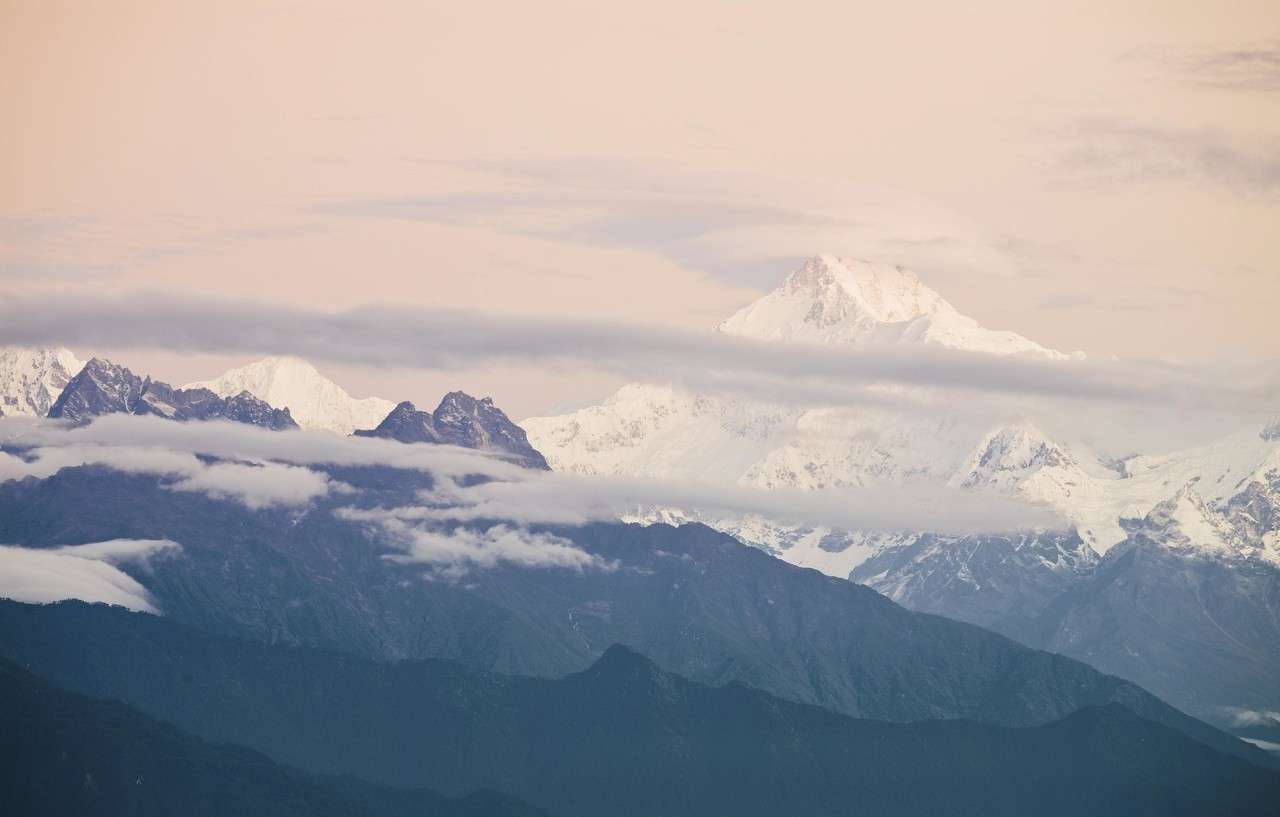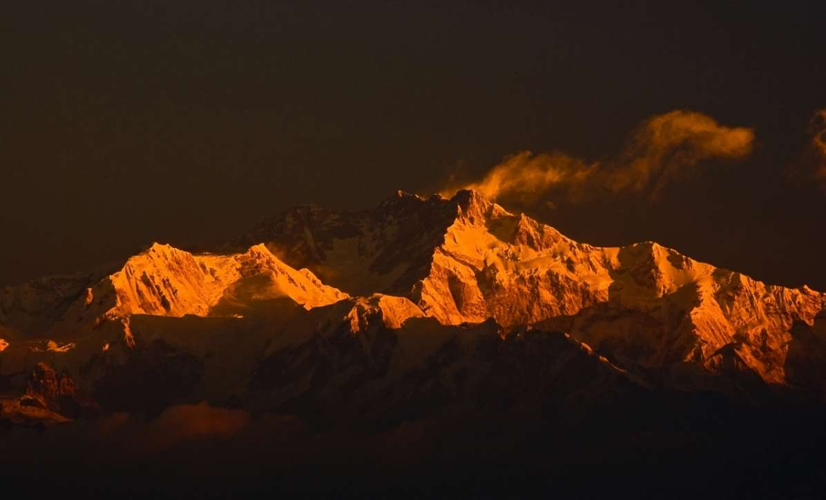 干城章嘉峰位于尼泊爾和印度邊界,是世界第三高峰,也是全世界14座8000米高峰中,位置最東的一座,無論從任何一個角度來看,干城章嘉峰都有著寬闊巨大的山體,由五個不同的峰頂(其中四個海拔在8400米以上)組合出的巨大山塊。
