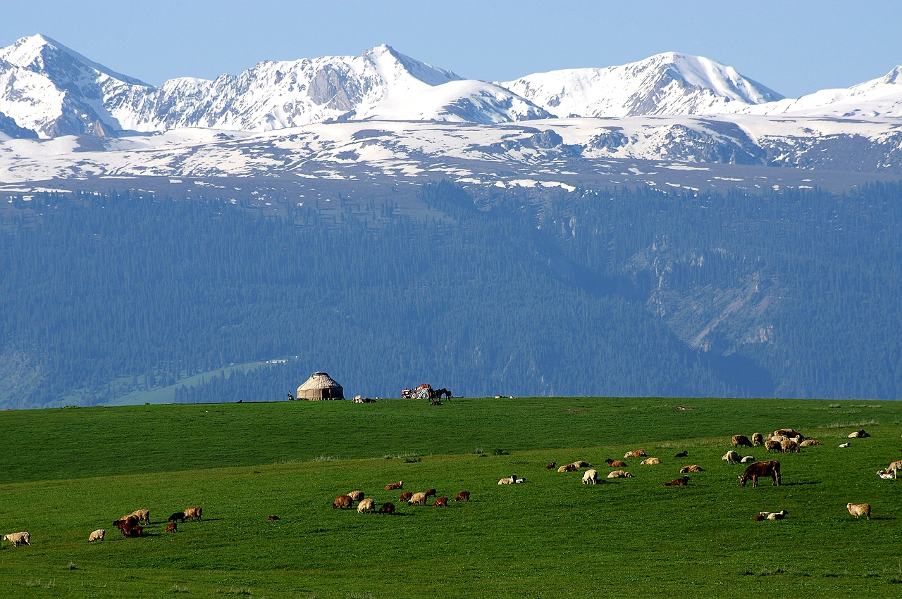 昭蘇草原,屬溫帶山區(qū)半干旱半濕潤冷涼氣候類型,特點(diǎn)是冬長(zhǎng)無夏,春秋相連,沒有明顯的四季之分。