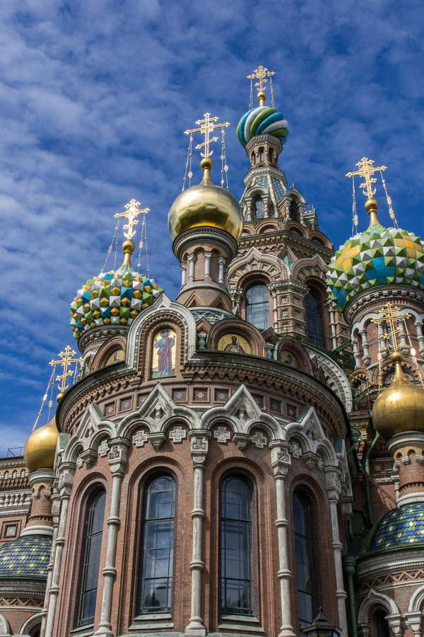 基督復(fù)活教堂上有五光十色的洋蔥頭頂,反映了俄國十六和十七世紀(jì)的典型的東正教教堂建筑風(fēng)格。教堂輪廓美麗,裝飾花花綠綠,與古老俄羅斯風(fēng)格與附近的古典式的建筑物成鮮明對比。版權(quán)所有山東聊城聊之旅國際旅行社有限公司,轉(zhuǎn)載必究!教堂高度約81米,寬闊的外形,采用了與莫斯科巴克洛夫教堂相同的構(gòu)造,與華西里教堂的區(qū)別在于鑲嵌復(fù)雜、顏色艷麗的影像圖案,用豐富的彩色圖案瓷磚、搪瓷青銅板裝飾面。基督復(fù)活教堂的建筑風(fēng)格迥異于圣彼得堡的其他建筑,該市主要是巴洛克和新古典主義風(fēng)格,但喋血大教堂特意設(shè)計成中世紀(jì)俄羅斯建筑,類似于17世紀(jì)的雅羅斯拉夫爾教堂和著名的莫斯科紅場的華西里·柏拉仁諾教堂。