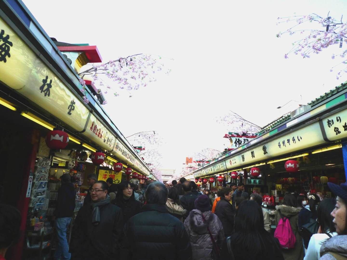 仲見世商業(yè)街從雷門延伸到淺草寺主要場地,大約250米長。兩旁分布有超過50家的商店,出售地方特產(chǎn)和一些普通旅游紀(jì)念品。