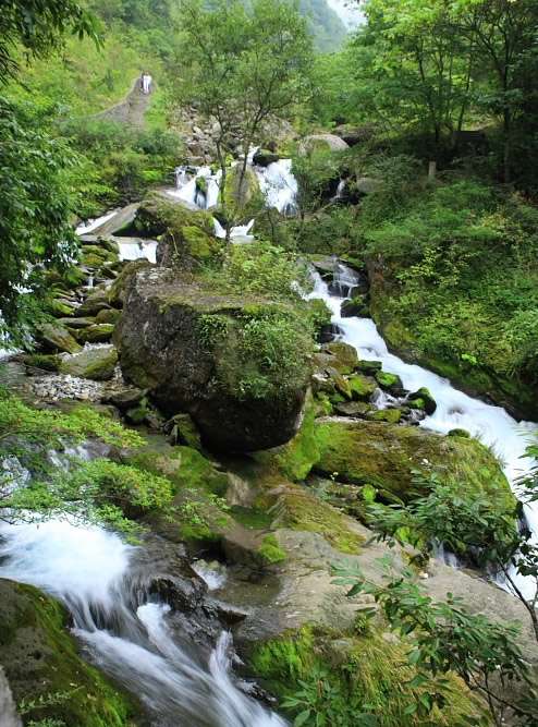 跳架溝位于金猴嶺以東,由鄭家包北西500米處暗河泉流形居,泉流在溝腦一深潭中涌出,清亮碧綠,穿林越谷瀉入木魚河,它是香溪的主要源頭。這里水質(zhì)純凈,含人體所需多種微量元素,飲用甘涼。香溪源景區(qū)北距木魚鎮(zhèn)4公里。香溪源是長江西陵峽北岸的一條重要支流,它是一條地下河,發(fā)源于海拔2800米的風(fēng)景埡。香溪源東源出于龍口河、長方河,流長45公里,匯入興山縣東河后注入香溪;西源出于木魚河、當(dāng)陽河、九沖河、流長68.5公里,匯入興山西河后注入香溪。此處香溪源指的是西源,它源于木魚河中上游西岸的跳架溝。跳架溝位于金猴嶺以東,由鄭家包北西500米處暗河泉流形居,泉流在溝腦一深潭中涌出,清亮碧綠,穿林越谷瀉入木魚河,它是香溪的主要源頭。這里水質(zhì)純凈,含人體所需多種微量元素,飲用甘涼。