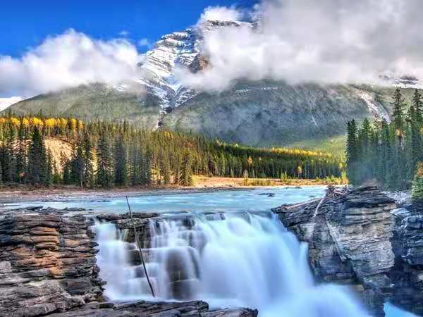 弓河瀑布(Bow River Fall)位于風(fēng)景秀麗的弓河(Bow River)之上,河水沿著班夫北面的山勢(shì)而來(lái),在市區(qū)繞過(guò)一個(gè)弧度再往北而去,形狀就像一張弓,因此而得名。