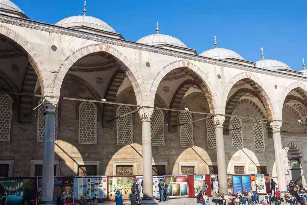 1617年,清真寺完工。它是奧斯曼帝國時代建筑和藝術的輝煌杰作。這是拜占庭的希臘文化和奧斯曼土耳其的突厥伊斯蘭教文化相結合的建筑,運用的是拜占庭帝國希臘文化的建筑技術來表現(xiàn)伊斯蘭教文化,如果沒有四周的六座叫拜塔,那么他就會被看成一座東正教教堂,這也是巴爾干半島上信仰東正教的各國的建筑方式,是拜占庭帝國(東羅馬帝國)所遺留下來的寶貴的非物質文化遺產(chǎn)。
