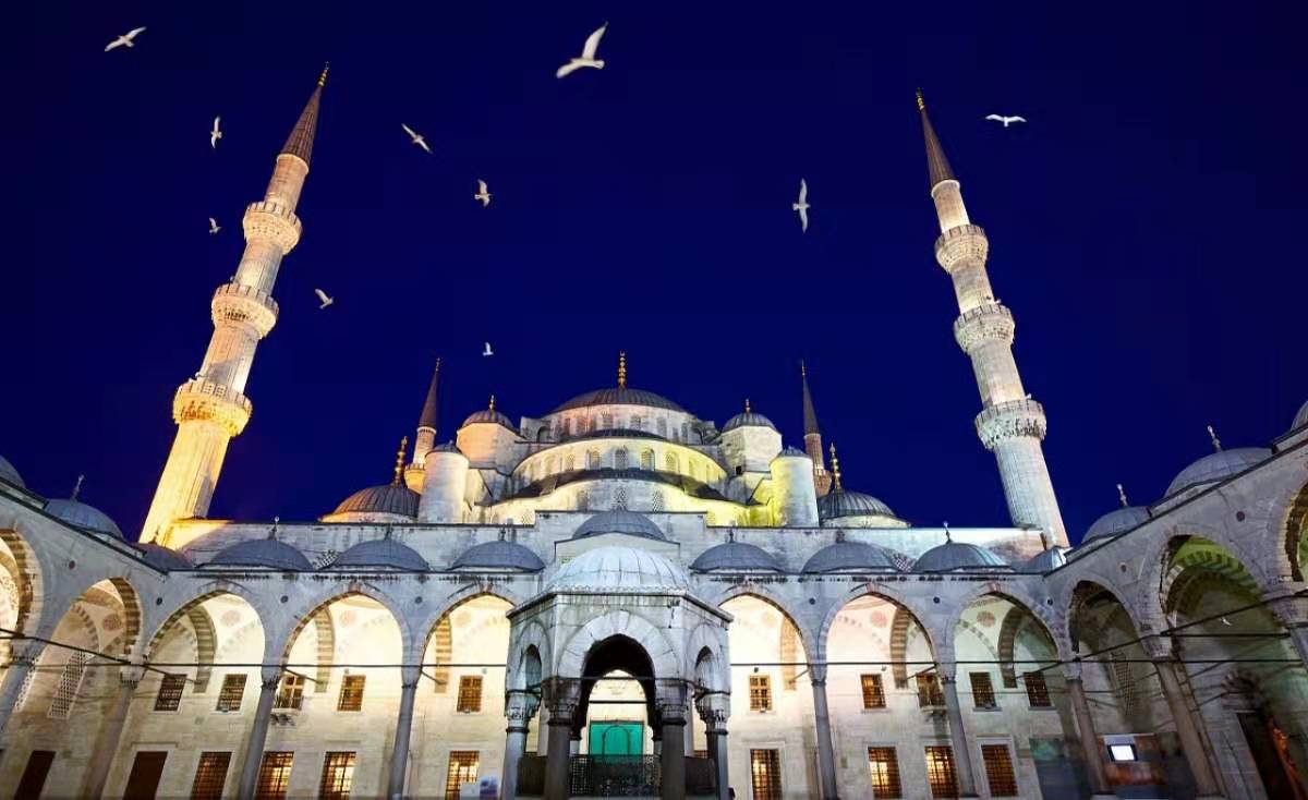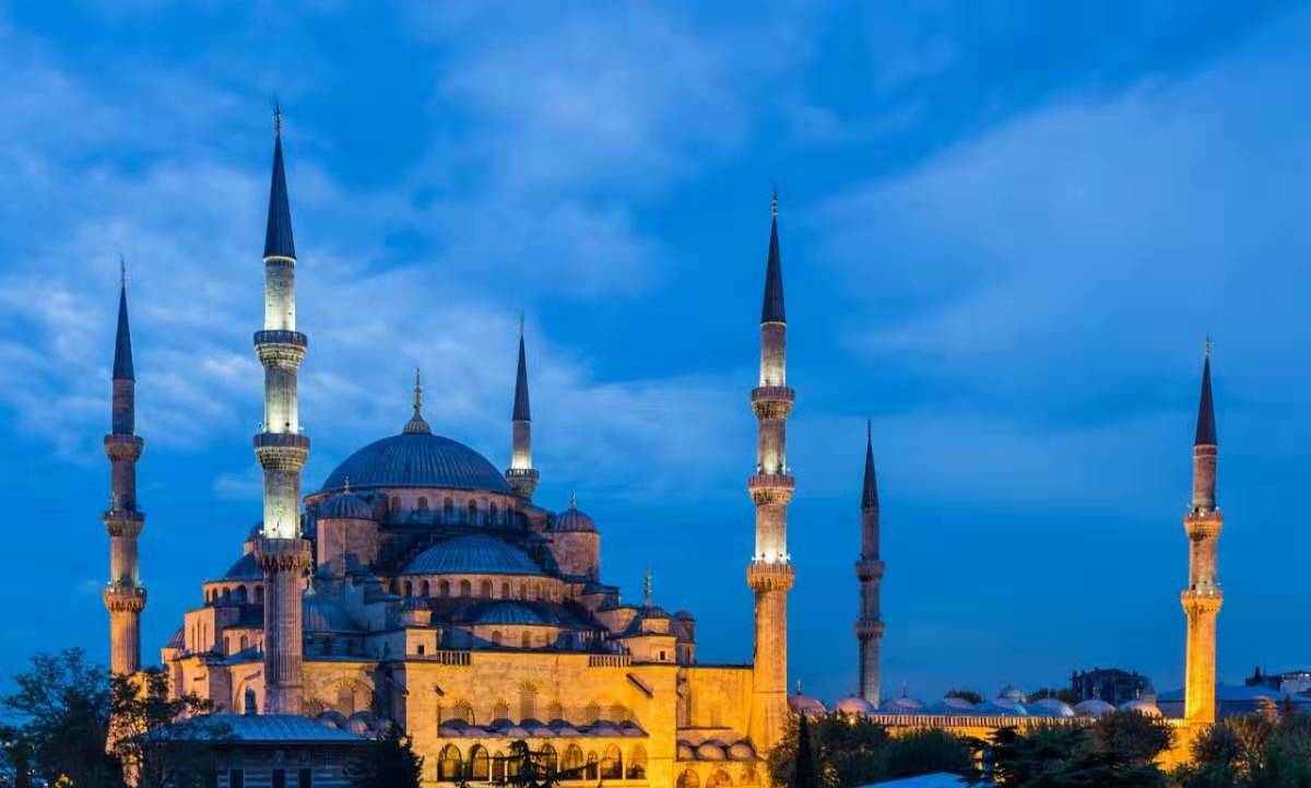 藍色清真寺,原名蘇丹艾哈邁德清真寺,土耳其著名清真寺之一,17世紀初由伊斯蘭世界著名古典建筑師錫南的得意門生Mehmet Aga設計建造,因清真寺內(nèi)墻壁全部用藍、白兩色的依茲尼克瓷磚裝飾故名,是伊斯坦布爾最重要的標志性建筑之一。