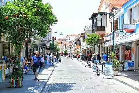 小鎮(zhèn)中心以釀酒和葡萄酒釀造聞名,葡萄酒工廠遍布切什梅半島地區(qū),大大促進了旅游開發(fā),精品酒店,風(fēng)帆沖浪尤為出名。