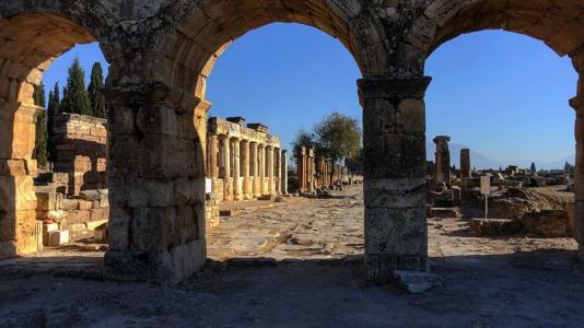 希拉波利斯的羅馬城鎮(zhèn)廢墟便在這個遺址附近,包括劇院、許多陵墓和一些老的溫泉浴場。