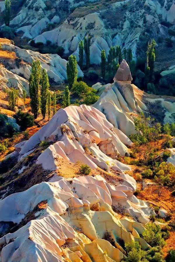 卡帕多西亞(Cappadocia,在古土耳其叫Kapadokya)以獨特的風景聞名,奇特的巖石構造、巖洞和半隱居人群的歷史遺跡使得這兒的“奇石林”與該國的棉堡齊名,同挾世界文化自然雙遺產之名,甚至還要比后者早三年入選。除了格雷梅(Greme)谷地、Ihlara峽谷等亮點,來到這兒還可以拜訪到一些令人驚嘆的地下城市。從坐熱氣球俯瞰漫山遍野的蘑菇屋、探訪當?shù)氐镍澴游菝窬?,到入住巖洞里的五星級酒店,此情此景在其他任何阿拉伯城市都體驗不到。