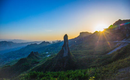 “一炷香”,高約150余米,最小直徑只有4米,此地的巖石的抗壓強度是800千克每立方厘米,它風(fēng)吹不倒,雨打不動,傲立群峰之中千萬年,守護著這片神秘的土地。他近觀猶如男根,展示著他威武的雄姿,儼然成了大峽谷中的鎮(zhèn)谷之寶。反映一炷香的美術(shù)作品眾多,以中國博物館協(xié)會會員、國家一級美術(shù)師、全國“畫中華名人故居第一人”、著名畫家拇指先生的《陳連升故里 鎮(zhèn)谷之寶一炷香》最為有名。相傳,這根石柱是天神送給當(dāng)?shù)匕傩盏囊桓y香,如遇災(zāi)難將他點燃,天神看到寥寥青煙,就會下凡來救苦救難,所以當(dāng)?shù)匕傩辗Q它為“難香”,這難香又長又細,晴空萬里時,一朵白云疊在峰頂,遠遠看去就像天上的香火,宛若仙境;陰雨天氣時,升起的一層薄霧,就像一縷青紗,將它打扮得若隱若現(xiàn),嫵媚動人。從地質(zhì)學(xué)上講,由于長江水系、清江水系長期交錯的影響,不斷地侵蝕,不斷地沖刷,才形成如今陡峭的石柱,由于保存極度困難,所以地球上類似細長的石柱并不多見,而最長最大的莫過于此。