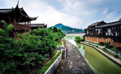滄浪之水清兮,可以濯我纓,滄浪之水濁兮,可以濯我足……濯水古鎮(zhèn)位于重慶市東南部,距黔江城區(qū)26公里,渝懷鐵路、渝湘高速公路、319國(guó)道從這里交匯穿過(guò),交通極為便利。濯水所在的阿蓬江流域,早在一萬(wàn)年前就有人類(lèi)活動(dòng),流淌過(guò)濯水古鎮(zhèn)的阿蓬江發(fā)源于湖北利川,是我國(guó)僅此一條自東向西流淌的內(nèi)陸河,自古與烏江、酉水一起成為溝通三峽地區(qū)和江漢平原的重要通道。