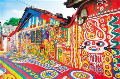 旅游傳奇景點(diǎn)「彩虹眷村」,起源于住在臺灣臺中市南屯區(qū)嶺東科技大學(xué)附近有一處舊眷村的八十七歲老榮民黃永阜,因?yàn)椤笩o聊」而拿起畫筆彩將眷村內(nèi)的巷弄街道當(dāng)成了天然的畫布,在上頭彩繪了各式美麗的彩虹線條與可愛動物,不僅染亮了小村,在網(wǎng)絡(luò)上引起熱烈討論,更形成一股參訪風(fēng)潮。因他的用色大膽,構(gòu)圖可愛并充滿童趣,讓到訪者有如置身彩虹世界,故網(wǎng)友稱此處為「彩虹眷村」。