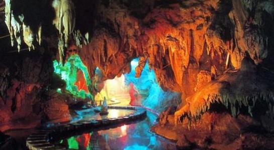 洞中景觀奇異絕頂。石山、石田、石幔、石瀑、石橋、石柱、石旗等景觀,天然自成,比比皆是,恰如天然石景公園。那些諸如“唐僧西行、神象觀潭、觀音坐蓮、王母瑤池、白龍游海、美女照鏡、淑女更衣、金蟾報(bào)曉、兄弟稱(chēng)雄、浪子回頭、猴王探路”等意象景觀,活靈活現(xiàn),傳神逼真。版權(quán)所有山東聊城聊之旅國(guó)際旅行社有限公司,轉(zhuǎn)載必究!尤其那壯觀氣派的“龍宮”,宮中的定海神針,高達(dá)29米,比黃龍洞中的定海神針高出1米多,粗幾倍,需幾個(gè)人才能合抱。定海神針?biāo)频窕ㄩT(mén)柱,石花燦爛,玉樹(shù)瓊花,其景其勢(shì),國(guó)內(nèi)一絕。洞府中還展示了大自然“三界”?!岸锤参锝纭?,洞中遍生石樹(shù)、石筍、石藤、石草、石花、石葡萄,種類(lèi)繁多,可謂植物標(biāo)本園?!岸锤畡?dòng)物界”,有意象中的諸如天上飛的、水里游的、陸地跑的,千姿百態(tài),栩栩如生。這里還曾是古生命的搖籃,洞中有古河床,殘存著45萬(wàn)年前的貝殼;還有5萬(wàn)年前的動(dòng)物腿骨化石,考古專(zhuān)家鑒定那是鹿和豬的骨頭?!岸锤巧锝纭?,無(wú)所不有,奇景萬(wàn)千。石梯田、石壩列列在目。那石幔從“天棚”順著高高的洞壁飄然垂下,高達(dá)13米,恢宏大度,勢(shì)如瀑布。它更象劇場(chǎng)幕布,任由大自然的鬼斧神工或拉開(kāi)或閉合。專(zhuān)家們認(rèn)定,這石幔是中國(guó)的唯一,也是亞洲的唯一。還有那乳石音樂(lè)更是一絕。形狀各異的鐘乳石,有的成片從洞頂一瀉而下,似瀑布從天而降,洶涌澎湃;有的懸掛在洞壁,象成熟的瓜果;有的從頂棚垂掛,狀似葫蘆一字排開(kāi),長(zhǎng)短不一卻錯(cuò)落有致。在這些乳石集中的一個(gè)地方,人們用木棒輕輕地敲擊乳石,可以發(fā)出不同的音符,可以敲出悅耳動(dòng)聽(tīng)的音樂(lè)。要是高手,還可以敲出樂(lè)曲來(lái)。倘若詩(shī)圣杜甫聽(tīng)此樂(lè)聲,定會(huì)將七絕《贈(zèng)花卿》末句改成:“此曲只應(yīng)洞中有,人間難得幾回聞。