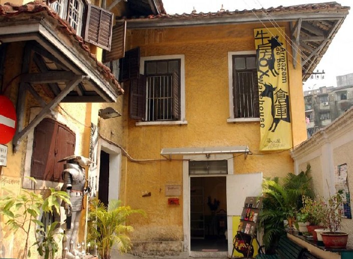 牛房倉(cāng)庫(kù)原先是檢疫牛只的倉(cāng)庫(kù),現(xiàn)在是澳門藝術(shù)團(tuán)體“婆仔屋藝術(shù)空間”的展覽地。牛房倉(cāng)庫(kù)旁邊有間小巧的書店,淡淡的音樂(lè)像香熏般在房間里擴(kuò)散。書店里面有個(gè)很像設(shè)計(jì)者辦公室的地點(diǎn),凌亂、狹窄,但有品位。