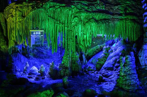 龍宮仙境”是一個鐘乳石正在不斷生長發(fā)育著的溶洞,洞內(nèi)的滴水活動非常活躍且洞內(nèi)的鐘乳石非常密集,有很多分布在游步道兩側(cè)。由隧道、前廳、金龍迎賓廳、龍宮寶藏廳、龍宮仙境廳、龍母后宮和仙人遺址等七部份組成。