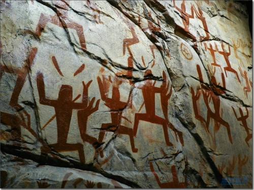 而關于花山巖畫的內(nèi)容,又是另外一個不解之謎,是專家們研究的又一個重點。由于花山巖畫歷史久遠,又缺少相關文獻記載。專家們只能就巖畫的畫面和出土的文物進行分析研究。專家們有的認為這是描述駱越人抗擊外敵入侵戰(zhàn)爭勝利的慶祝場面;有的認為是駱越人祈求上天保佑其兵強馬壯、社會繁榮的愿望;有的則認為巖畫是駱越人用來鎮(zhèn)河妖,祈求風調(diào)雨順的意愿......各種觀點說法不一,至今還沒有定論。但可以肯定的是:以花山巖畫為中心的左江流域巖畫長廊,以其巖畫地點分布之廣,作畫難度之大,畫面之雄偉壯觀,都是國內(nèi)外所罕見,具有很強的藝術內(nèi)涵和重要的考古科研價值。從巖畫中,我們不僅看到壯族先民古駱越人的繪畫藝術成就,同時還感受到了古代壯族社會生活內(nèi)容的豐富和勤勞、勇敢、奮斗的民族精神。