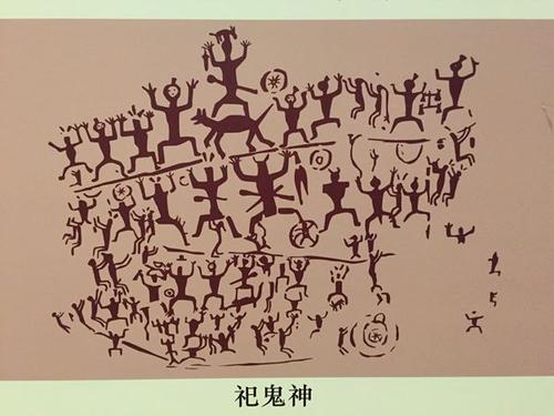 從眾多人物的姿態(tài)上看,畫面更像是一場盛大的祭祀或節(jié)日慶典。畫中人物大多雙臂向兩側平伸,曲肘上舉,雙腿分開成屈蹲,明顯是模仿青蛙的姿態(tài),而蛙神崇拜正是壯族的古老傳統(tǒng),青蛙舞至今仍在民間有所流傳;其次,畫面中出現(xiàn)很多銅鼓,這種重要的禮器也多用于祭祀場合;另外,一些人物形象有明顯的性別特征,畫面出現(xiàn)了身懷六甲的婦女、成群結隊的小人,有人認為這反映了古駱越人的生殖崇拜。據(jù)這些內(nèi)容可以推斷,畫面表達了一種歡樂、莊嚴、神圣的場面,如果不是祭祀,也是某種慶祝儀式。而在古代駱越人的生活當中,盛大的節(jié)日慶典,往往是和祭祀同時進行的,在舉行儀式的過程當中,當然也少不了敲銅鼓、跳蛙舞。