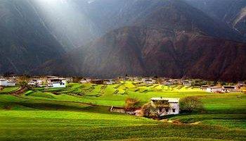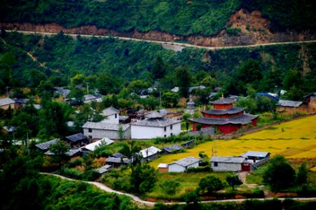 秋那桶村是一個(gè)以優(yōu)美的田園風(fēng)光著稱的小小村落,在丙中洛的最北端,不多的幾戶人家散落于山谷中的平地上。從這里再往前走,經(jīng)過(guò)一段沒有人煙的地帶,就可以進(jìn)入西藏了,這里是怒江的終點(diǎn)。