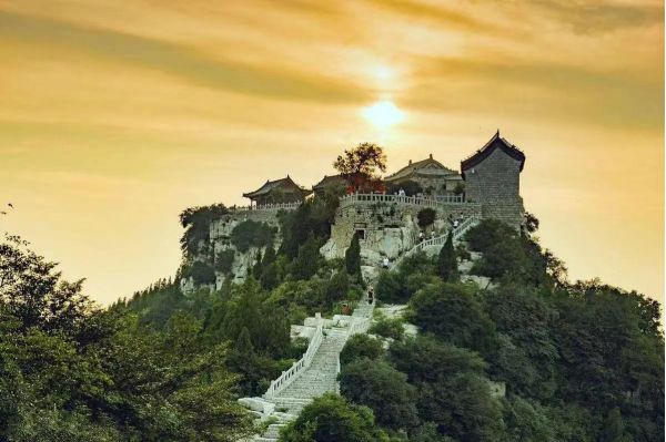 云門山風景區(qū)山腰處是“望壽閣”,原為元朝時期的“靈官廟”,后毀于戰(zhàn)火,1984年重修。因這里與山頂?shù)摹皦邸弊诌b遙相望,于是更名為“望壽閣”。閣內(nèi)的正殿建于懸崖之上,高大宏偉,古樸壯觀,正門匾額上書“望壽閣”三個大字,為著名書法家啟功題寫。殿內(nèi)供奉福、祿、壽三星,東西兩邊的廂房里供奉關公和財神,許多游客喜歡在此進香拜神,希冀自己和家人一生平安,萬事如意。
