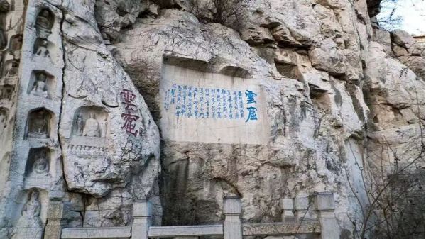 云門仙境,歷來頗得佛、道兩教的青睞,山陽有大小5個石窟,石刻造像272尊,主要為西方三對像,也有力士、釋迦多寶二佛說法像等。有題記者可追溯至開皇九(589)年,雖經(jīng)1400年的滄桑變易,風雨剝蝕,這些造像仍然保存基本完好。明清兩代,在云門山題刻者更多,這些題刻和碑碣都是研究我國古代書法藝術和云門山之歷史較為準確的資料,在眾多的題刻中最有名的是山陰處海內(nèi)外罕見的巨大鐫刻"壽"字,該字結構嚴謹,端莊大方,坐南朝北,通高7.5米,寬3.7米,單是下部的"寸"字就高2.22米,為大個頭的漢子所不及,故當?shù)赜?壽比南山"、"人無寸高"之說。云門山四周青山逶迤,峰巒秀麗,松柏疊翠,森林幽深,空氣清新,環(huán)境靜謐,與整潔優(yōu)美、繁盛發(fā)達的市區(qū)連接映襯,構成群山連翠,障城如畫的靚麗風光。北宋著名的政治家、人稱“鐵面御史”的趙抃曾于熙寧知青州,他在《詠云門山》一詩中贊美云門山曰:“十里崢嶸到忽平,兀然如覺夢魂醒。石通幽室心生白,徑擁寒云步入青。一水下窺絕線,兩山前列似開屏。重城歸去仍堪喜,歲年稔人家戶不扃。”黃庶(黃庭堅之父)曾任青州通判,他也賦詩贊美云門山曰:“區(qū)區(qū)霸跡欲知小,試絕大云孤頂看。老僧指我日上處,鏡面瀉出黃金盤?!?