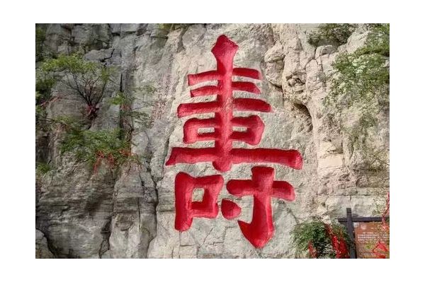 山陰處海內(nèi)外罕見的巨大鐫刻"壽"字是“壽比南山”典故的出處,該字結構嚴謹,端莊大方,坐南朝北,通高7.5米,寬3.7米,單是下部的"寸"字就高2.22米,為大個頭的漢子所不及,故當?shù)赜?壽比南山"、"人無寸高"之說。這個"壽"字是明嘉靖年間衡王府內(nèi)掌司冀陽周全所獻書。端詳此"壽",字體揮灑俊逸,筆劃圓泣流暢,雖千鑿百斧雕成,卻不露分毫痕跡,充分體現(xiàn)了勞動人民的聰明智慧,是書法石刻藝術的瑰寶。自此,青州官民,朝野上下,去云門山拜壽的人絡繹不絕,已有400余年的歷史了。眾從的中外游客都把能到云門山參拜大壽字作為自己最大的心愿。